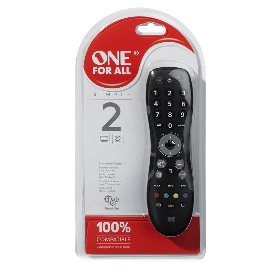 One For All OFA URC6420 Simple 2 univerzální DO 2v1 univerzální dálkové ovládání pro 2 zařízení TV/LCD/LED/Plasma Satelit/Cable/DVB-T/IPTV receiver IR 2x AAA (baterie nejsou součástí dodávky)