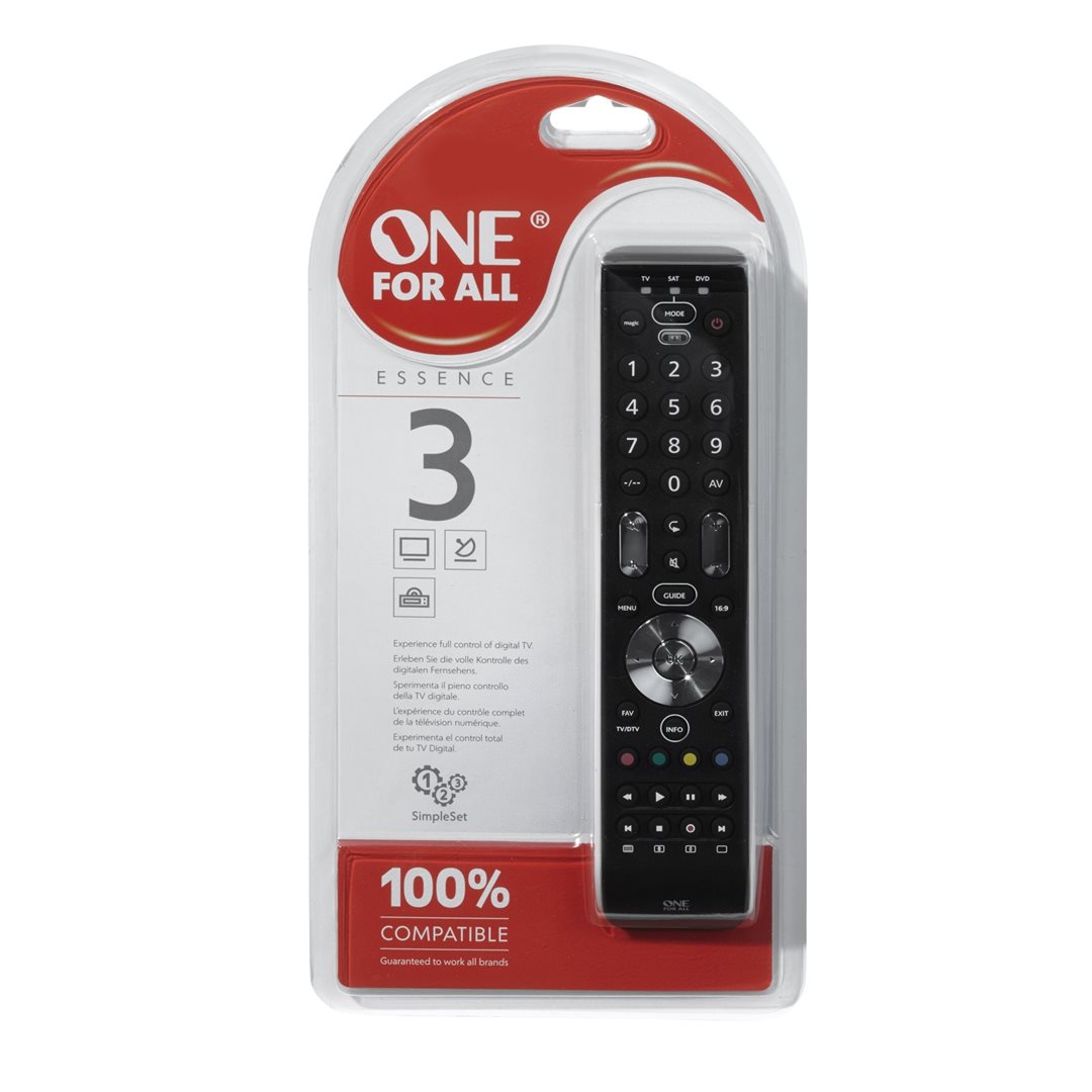 One For All OFA URC7130 Essence 3 univerzální DO 3v1 univerzální dálkové ovládání až pro 3 zařízení TV/LCD/LED/Plasma Satelit/Cable/DVB-T/IPTV receiver DVD/Blu-ray player IR 4x AAA (baterie nejsou součástí dodávky)