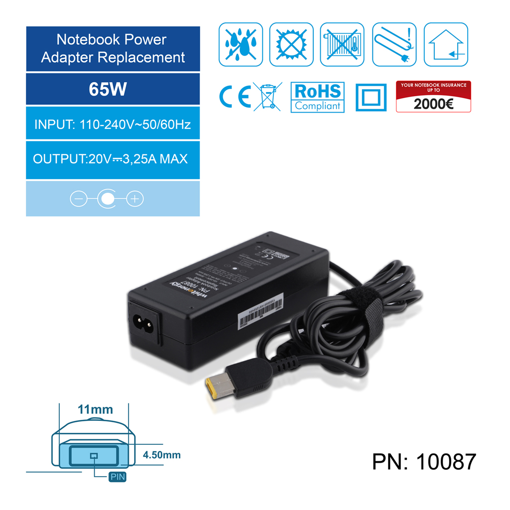 WE AC adaptér 20V/3.25A 65W konektor Lenovo 11x4.5x0.6mm