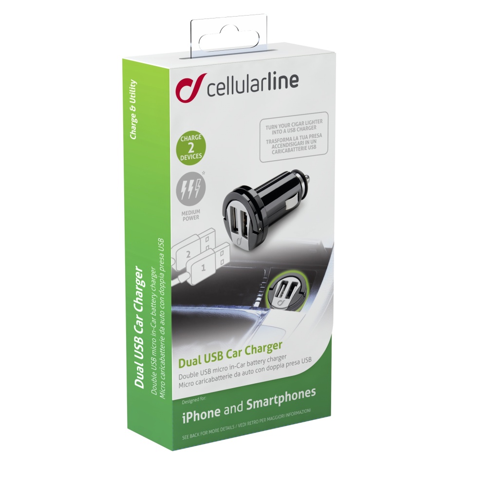 Autonabíječka CELLULARLINE Dual, 2xUSB, 2A, černá