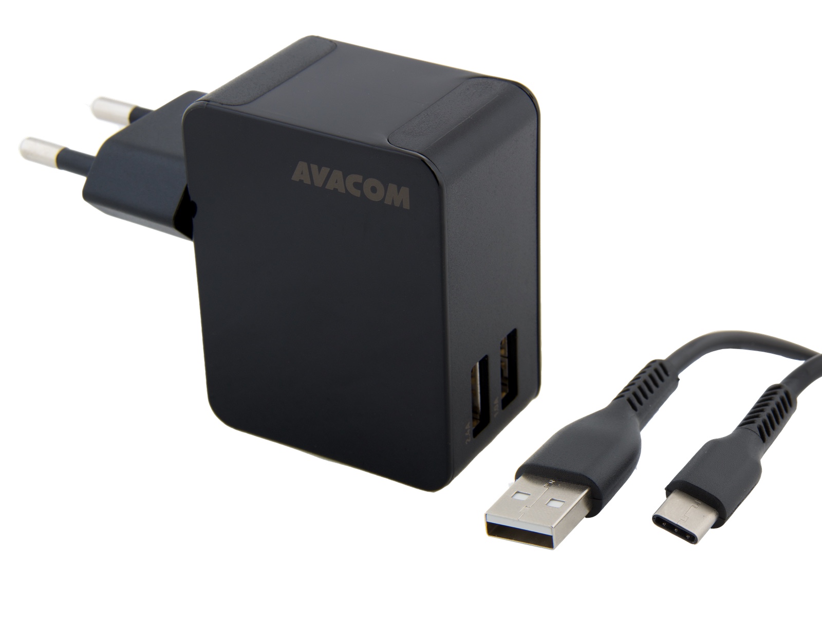 AVACOM HomeNOW síťová nabíječka 3,4A se dvěma výstupy, černá barva (USB-C kabel)