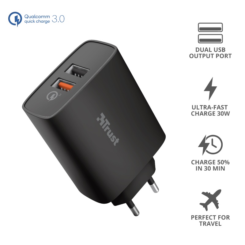TRUST QMAX USB A+A WALL CHARGER QC3 30W