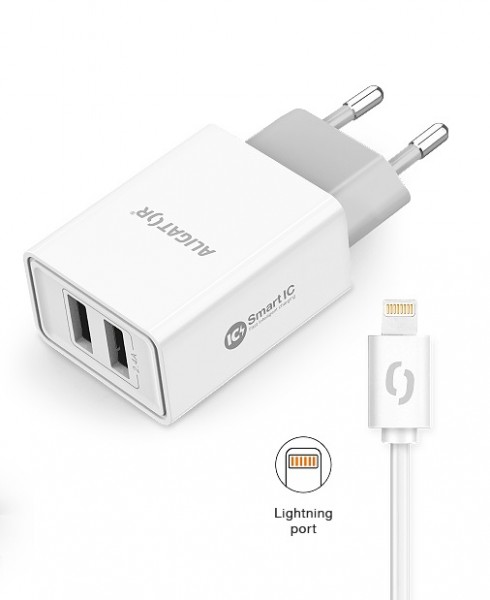 ALIGATOR Chytrá síťová nabíječka 2,4A, 2xUSB, smart IC, bílá, USB kabel pro iPhone/iPad