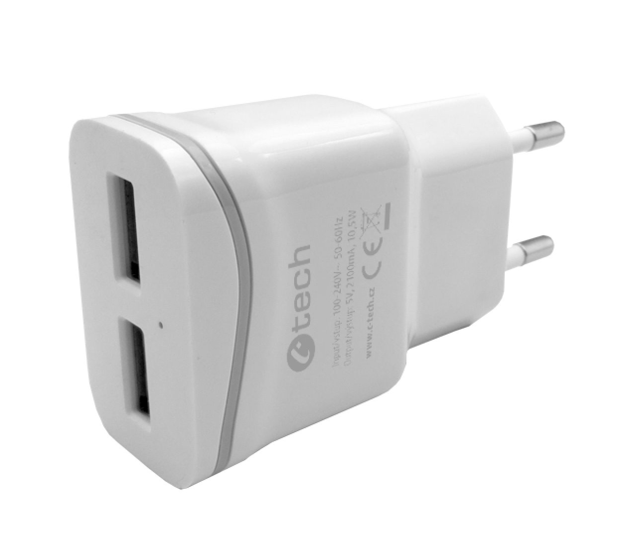 Nabíječka USB C-TECH UC-03, 2x USB, 2,1A, bílá