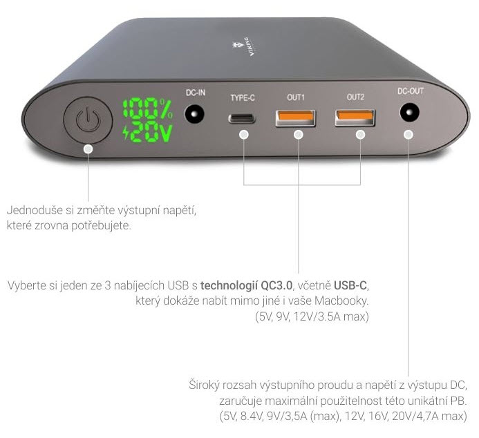 VIKING, Notebook powerbank Smartech II QC3.0 40000mAh, Šedá
