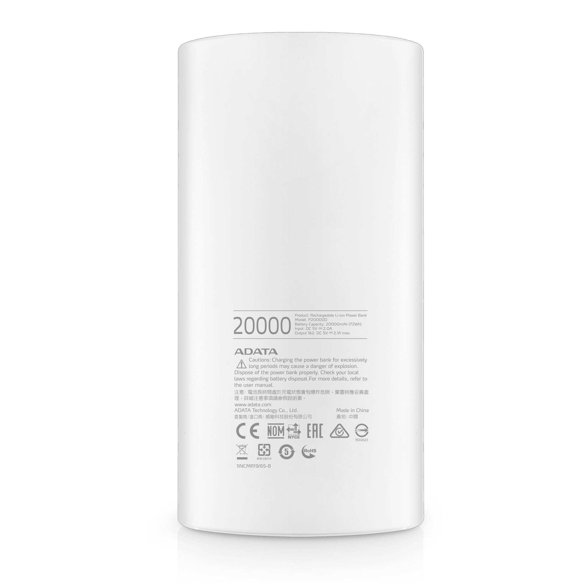 ADATA P20000D Power Bank 20000mAh bílá