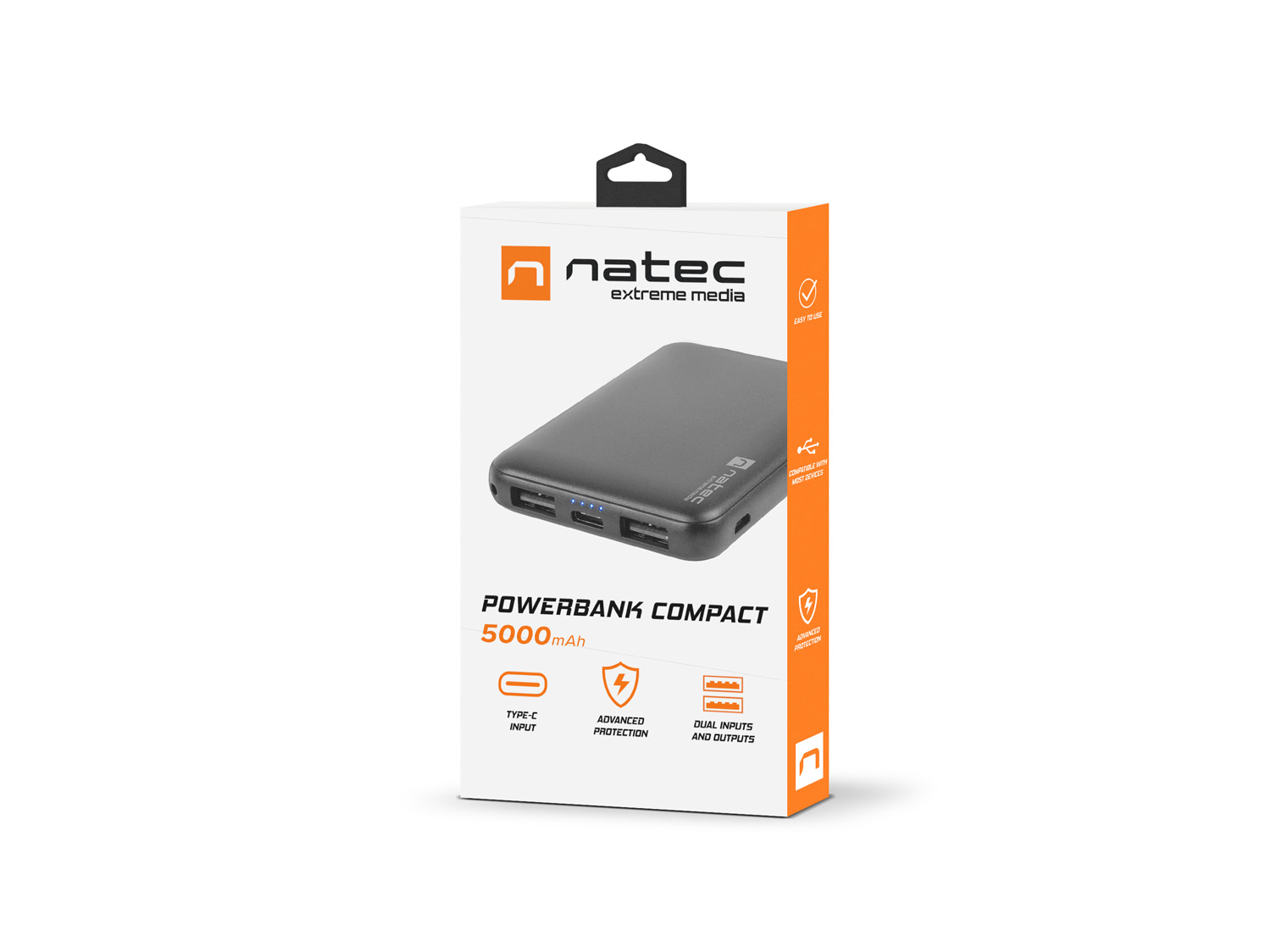 Natec Compact Power bank 5000mAh, černý, Type-C, micro USB