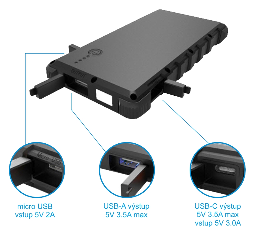 Solární powerbanka VIKING W10 10000mAh, Outdoorová s IP67, Podpora rychlonabíjení QC3.0, USB-C