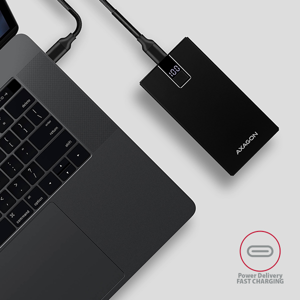 AXAGON PWB-L10QC, ALU SLIM Powerbanka Li-pol 10000mAh, 2x QC3.0 výstup, USB-C PD vstup/výstup, LCD d