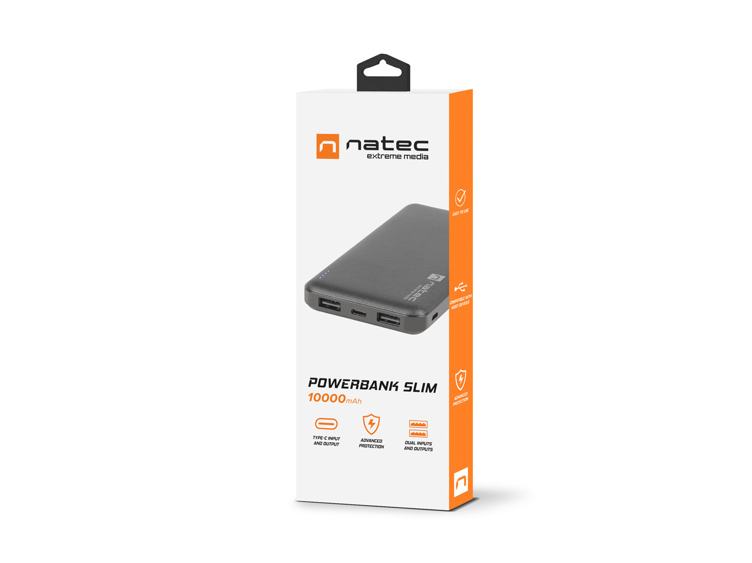 Natec Trevi Slim Power bank 10 000mAh, černý, Type-C, micro USB