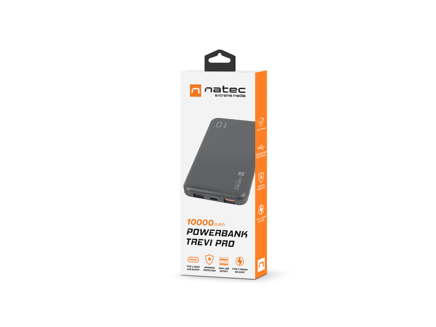 Natec Trevi Pro Power banka 10 000mAh Quick Charge 3.0, černá, 1x Type-C, 2x USB
