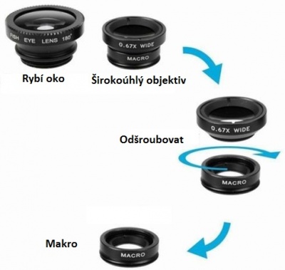 Univerzální sada objektivů pro mobilní telefony, rybí oko, makro, širokoúhlý objektiv