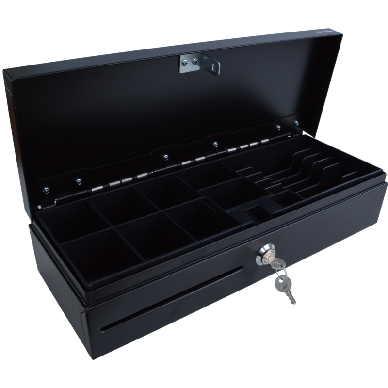 Pokladní zásuvka flip-top FT-460C1 - s kabelem, bez zamykatelného krytu, 9-24V, černá