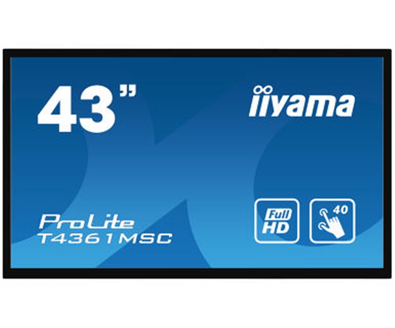 43" 40 point PCAP touch monitor with edge-to-edge glass The Full HD (1920x1080) T4361MSC is the ideal interactive display solution for education, interactive digital signage and in-store communications. The Projective Capacitive (PCAP) touch technology with 40 touch points ensures a seamless and accurate touch response. Featuring scratch-resistant metal housing, edge-to-edge glass and an AMVA3 LED panel, this display can be used in landscape and portrait orientation in the mo