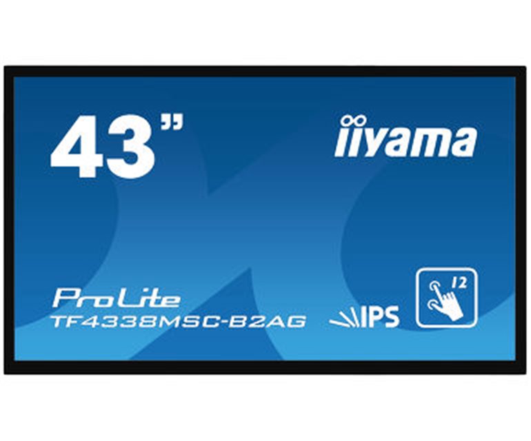 43" 12pt Open Frame touch monitor with edge-to-edge glass The Full HD (1920x1080) Open Frame TF4338MSC is the ideal interactive display solution for education, kiosks, interactive Digital Signage and in-store communications. The Projective Capacitive (PCAP) touch technology with 12 touch points ensures a seamless and accurate touch response. Featuring a metal housing with 60950-1 ball-drop proof, scratch-resistant, edge-to-edge glass and an IPS panel; this display can be used