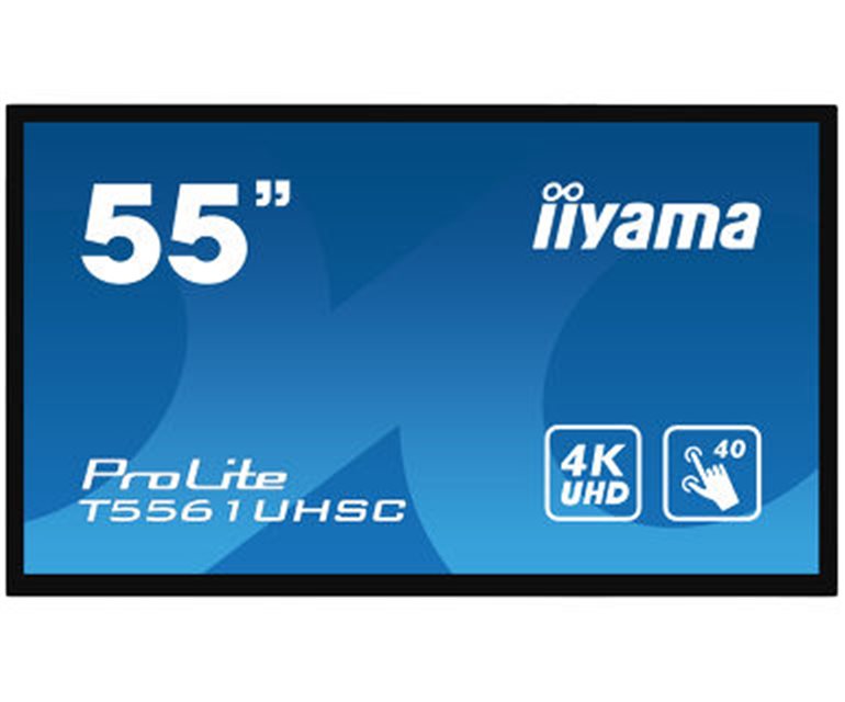 55" 40pt PCAP touch monitor with edge-to-edge glass and Intel® SDM slot The 4K UHD (3840x2160) T5561UHSC is the ideal interactive display solution for education, interactive Digital Signage and in-store communications. The Projective Capacitive (PCAP) touch technology with 40 touch points ensures a seamless and accurate touch response. Featuring scratch-resistant metal housing with 60950-1 ball-drop proof, edge-to-edge glass and an IPS panel; this display can be used in