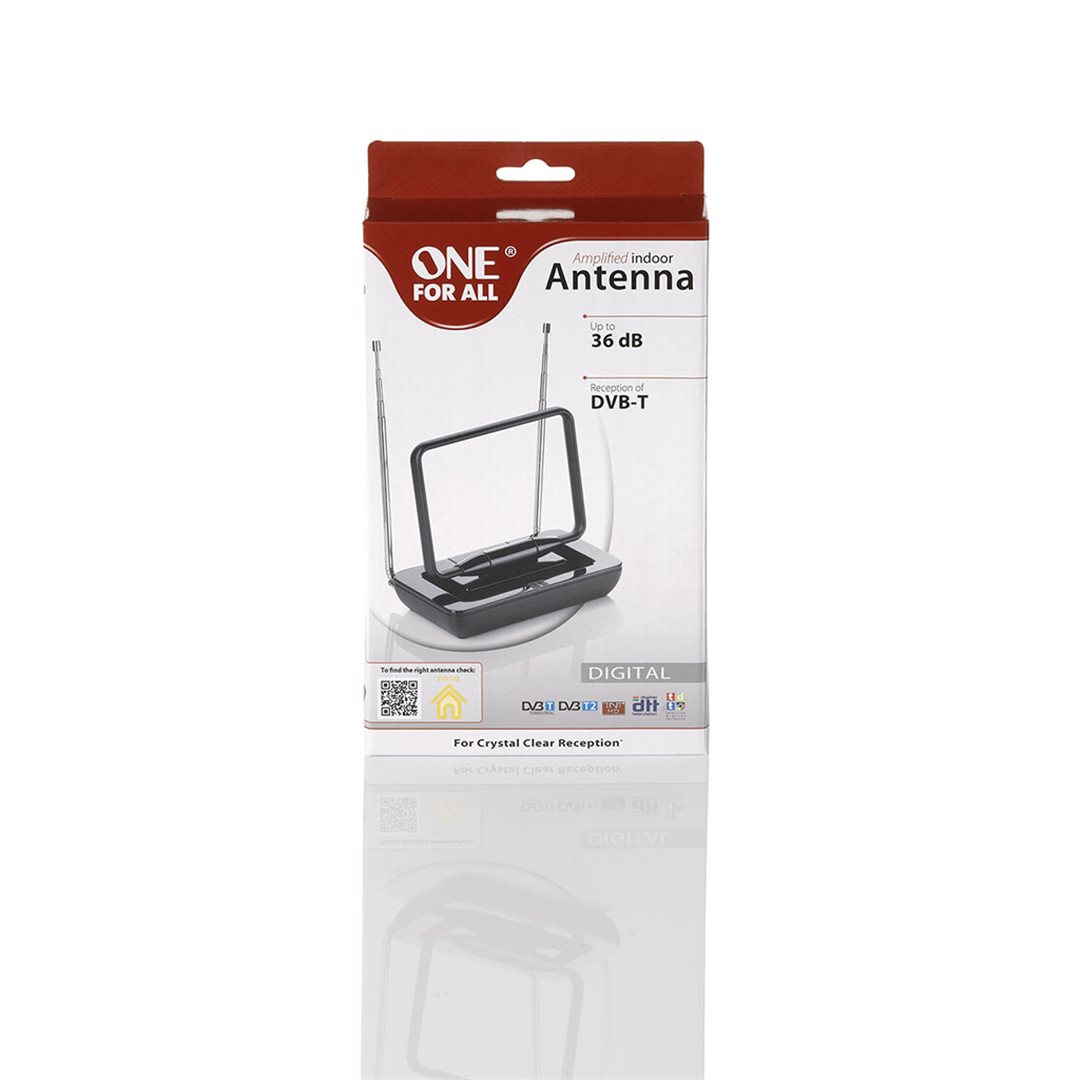 One For All OFA SV9440 Pokojová anténa aktivní 45dB 3m coax bílá/černá Dimensions (LxWxH / cm) 23.8 x 4.4 x 14.1 Indoor DVB-T / DVB-T2 DAB / DAB+ HD-ready Full HD 0-25 km VHF / UHF Noise Figure (dB) 4dB Gain (dB) 45 Coaxial cable (meters) 3m Signal Level Indicator No Active noise filters / GSM block filter Interference free (4G filter) Patch technology