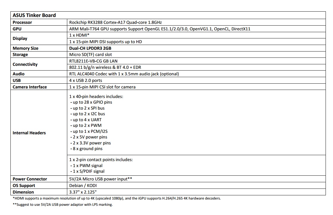 Asus TINKER BOARD/2GB