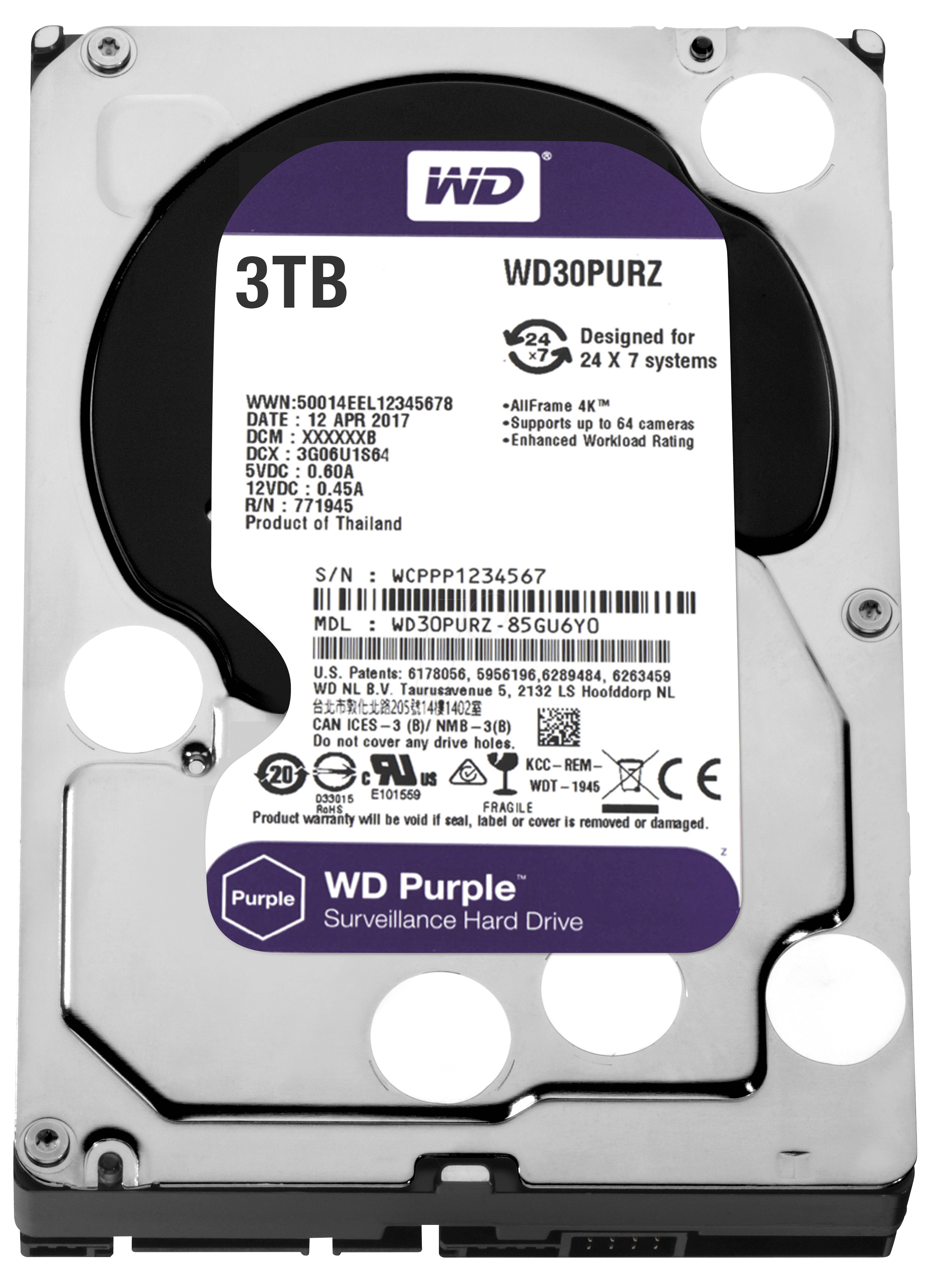 HDD 3TB WD30PURZ Purple 64MB SATAIII 5400rpm 3RZ