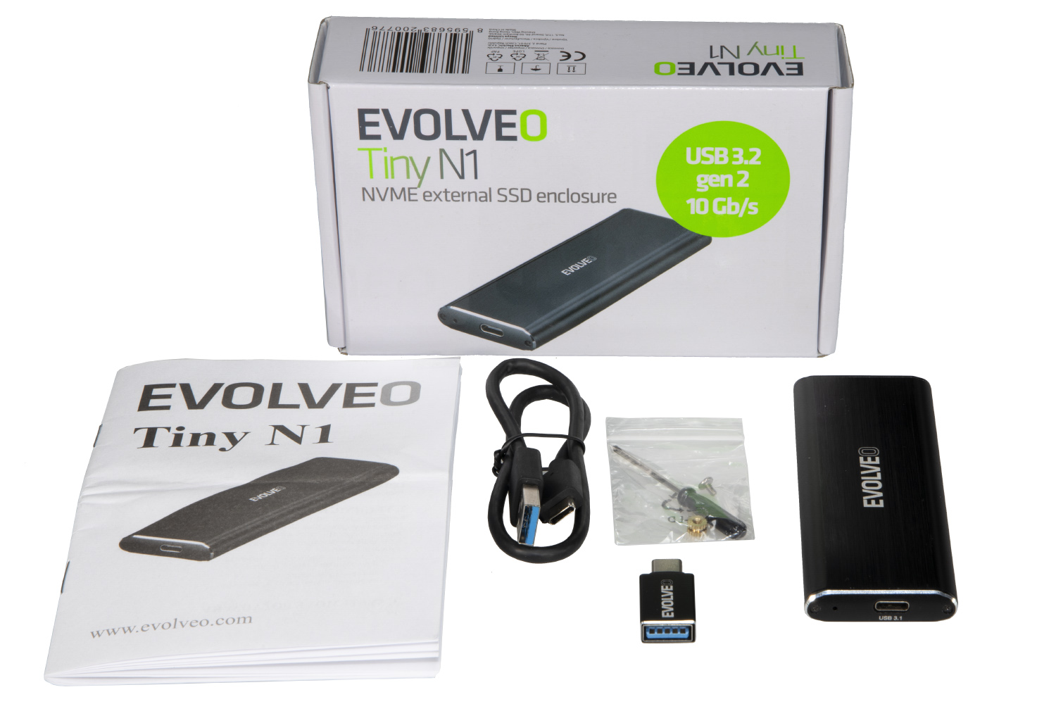 EVOLVEO Tiny N1, 10Gb/s, NVME externí rámeček, USB A 3.1