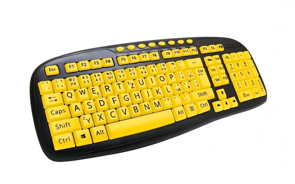 Čtyři klávesy pro ovládání nejpoužívanějších prvků multimédií (play/pauza, zesílení hlasitosti, zeslabení hlasitosti a ztlumení)