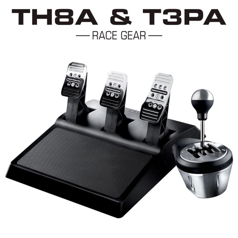 Závodní převodovky TH8A a sada pedálů T3PA Převodovka TH8A Add-On Shifter Realismus a autentičnost Realistický pocit řazení zařízení Odnímatelná hlavice umožňuje výměnu za reálnou hlavici Unikátní design umožňuje dva styly řazení pomocí dvou výměnných destiček:"H" (7+1) nebo "Sekvenční (+/-)" Robustnost a přesnost 100% kovový vnitřní mechanismus, páka a upínací systém Technologie H.E.A.R.T (HallEffect AccuRate Technology) Připojení