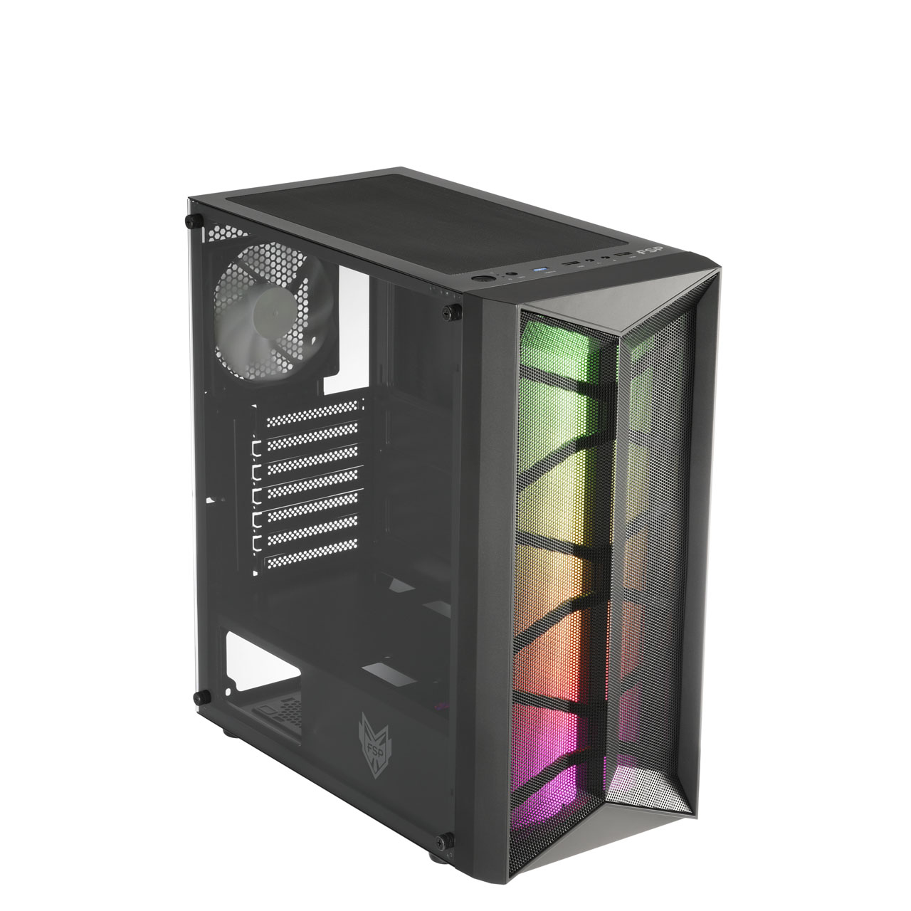 FSP/Fortron ATX Midi Tower CMT211 Black, průhledná bočnice, A.RGB