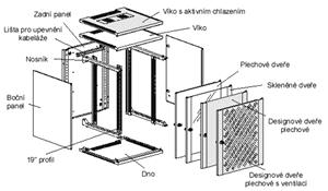 *2 páry 19“ serverových profilů s popisem pozic