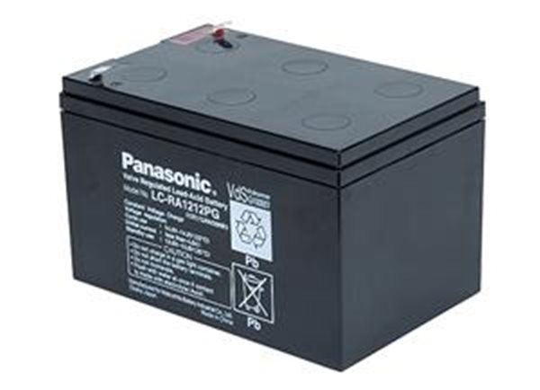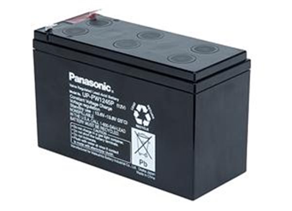 Bezúdržbový, ventilem řízený, plynotěsný olověný akumulátor Panasonic UP-RW1245P1 ,určený pro vyšší krátkodobé vybíjecí proudy, s životností 6-9 let, faston 250 = 6,3mm.
