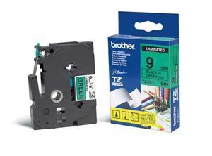 Originální kazeta s páskou Brother TZe-721 - černý tisk na zelené, šířka 9 mm Originální kazeta s laminovanou páskou TZe-721 kompatibilní s širokou řadou tiskáren Brother P-touch je zvláště všestranná díky své snadno čitelné černé a zelené barvě - ideální pro domácnost, kancelář a další pracoviště.