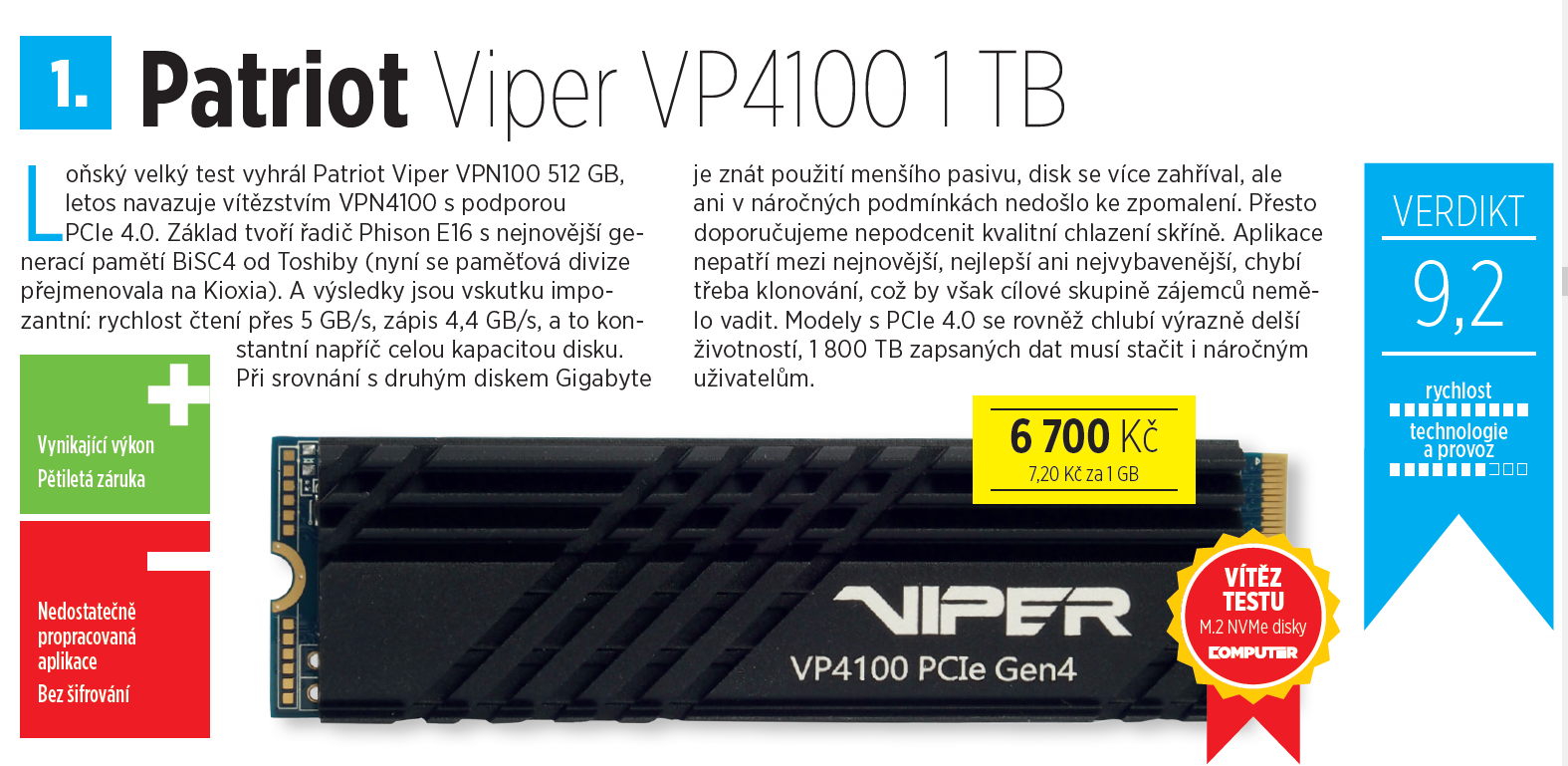 SSD 1TB PATRIOT VP4100 M.2 2280 PCIe NVMe Gen4 x 4