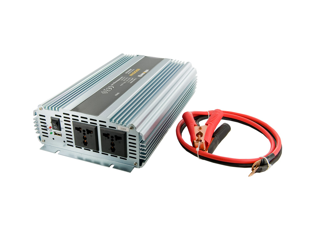 WE Měnič napětí DC/AC 24V / 230V, 2000W, 2 zásuvky