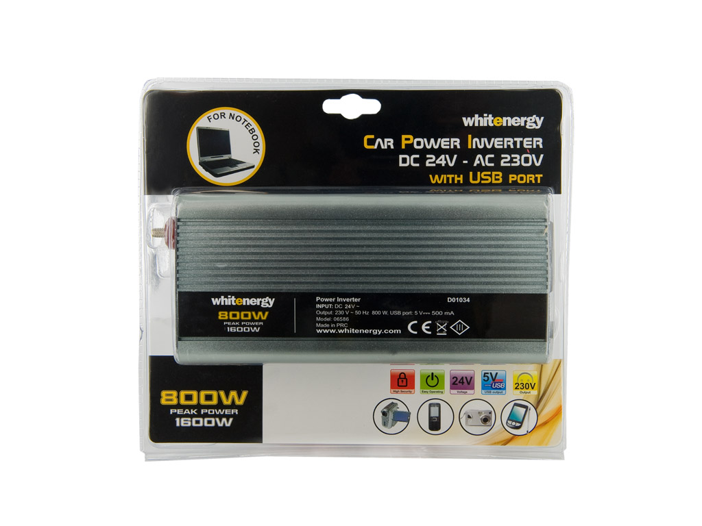 WE Měnič napětí DC/AC 24V / 230V, 800W, USB