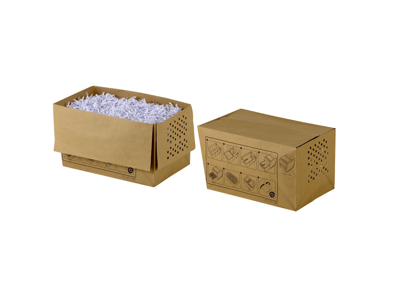 Pomozte chránit životní prostředí používáním pytlů na recyklovatelný skartovaný odpad ve skartovačkách Rexel Mercury s automatickým podavačem. Pytel jednoduše vložte do výsuvného koše skartovačky. Přední strana pytle má perforaci, takže můžete průhledovým okénkem zjišťovat, kolik skartovaného odpadu už v pytli je. Až bude plný, můžete jej vyjmout z koše, uzavřít s