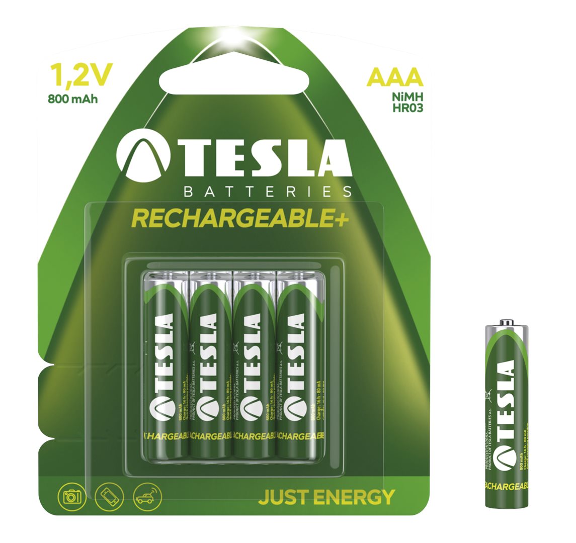 Tesla nabíjecí baterie jsou dodávány již přednabité, tzn. určeny k okamžitému použití, bez nutnosti prvotního nabíjení. Obsahují speciální nikl-metal hydridový článek s nízkým samovybíjecím efektem. Dlouhá životnost akumulátoru, minimálně 500 nabíjecích cyklů. Vhodné do všech zařízení, zejména dálkové ovladače, rádia, MP3,svítilny, čelovky, myši pro PC, atd. Balení obsahuje 4 ks baterií (800 mAh/ ks).