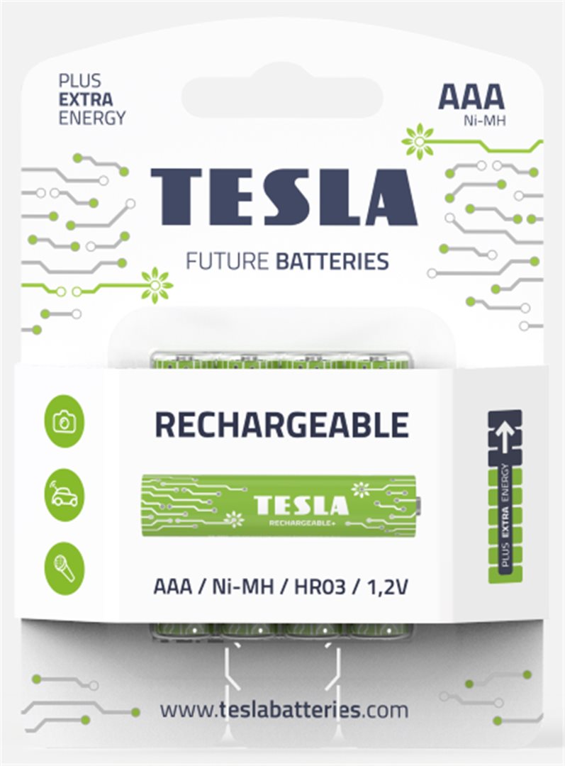 Tesla nabíjecí baterie jsou dodávány již přednabité, tzn. určeny k okamžitému použití, bez nutnosti prvotního nabíjení. Obsahují speciální nikl-metal hydridový článek s nízkým samovybíjecím efektem. Dlouhá životnost akumulátoru, minimálně 500 nabíjecích cyklů. Vhodné do všech zařízení, zejména dálkové ovladače, rádia, MP3,svítilny, čelovky, myši pro PC, atd. Balení obsahuje 4 ks baterií.