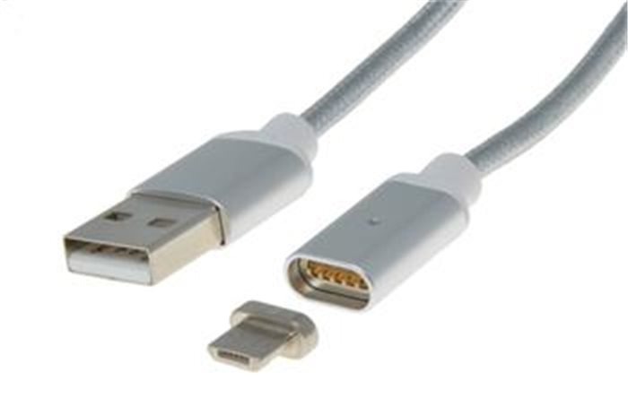 PremiumCord Magnetický micro USB 2.0, A-B nabíjecí a datový kabel 1m, stříbrný * Micro USB Konektor obsahuje magnet * Konektor micro USB se zasune na trvalo do telefonu a pro nabíjení se kabel magneticky přicvakne ke koncovce. * Magnetický konec kabelu pouze přiložíte a magnet již se postará o přesné navedení napájecí koncovky.Pro nabíjení není třeba řešit orientaci při spojení konektorů, kabel nabíjí v obou polohách. * Pro připojení dat a