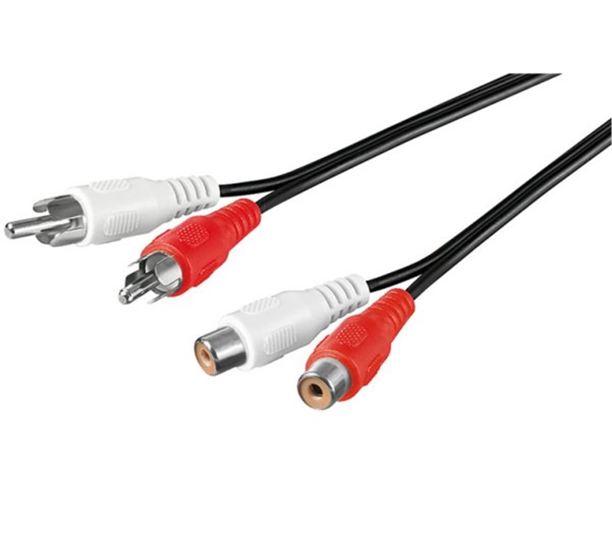 Kabel pro prodloužení spojení dvou audio zařízení zvukovým signálem stereo kvality. Na obou stranách jsou 2 konektory RCA (cinch). - Konektory: 2 x RCA cinch male <-> 2 x RCA cinch female - Barva konektorů: černá a červená - Barva: černá - Délka:2 m