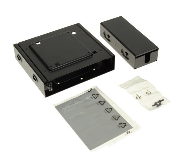 Držák Dell™ OptiPlex Micro Dual VESA slouží k umístění počítače OptiPlex Micro za flexibilní držák monitoru montovaný na stěnu (prodává se samostatně). To je užitečné při práci v týmovém prostředí, ve kterém uživatelé sdílejí monitor. Vynikající volbu představuje toto řešení i pro uživatele potřebující při práci stát. Společná montáž počítačea monitoru zjednodušuje kabeláž a dodaný kryt napájecího adaptéru zjednoduší vzhled pracovní stanice ještě více. Kromě toho, že počítač OptiPlex skryje před nežádoucími pohledy, umožňuje přesouvání počítače coby držáku a monitoru. Uživatelé počítače OptiPlex navíc získávají upravitelné řešení, které vyhoví jejich pracovním postupům bez změti kabelů mezi počítačem a monitorem.