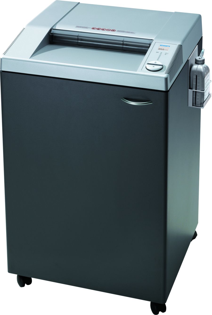 Týmový skartovač s extra výkonným motorem a samočinným olejováním skartovacích válců. Vstupní šířka 405 mm, umožňuje skartovat formát A3. Kapacita skartace až 60 listů 70g/m2 papíru v křížovém řezu na částice 2×15 mm. Kontrolní světelná indikace aktuálního zatížení ECC, velký objem odpadního koše 165 litrů.
