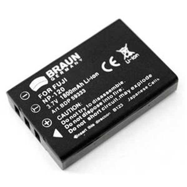 Li-Ion akumulátor Braun BDP-FNP120 (3,7 V/1800 mAh). Ekvivalentní s akumulátory: * Fuji NP-120 * Kyocera BP-1500S * Pentax D-Li7 * Ricoh DB-43 Určen pro digitální fotoaparáty: * FUJI Finepix F10, F11 * FUJI Finepix M603 * KYOCERA Tvs Digital * PENTAX Optio 450, 550, 555, 750, 750Z * PENTAX Optio MX, MX4 * RICOH Caplio 300G, 400G, 500G * RICOH Caplio G3, G4 * RICOH Caplio GX, GX8 * RICOH Caplio RR30 * RICOH Caplio RX * CASIO EX S200, ZS10 * ROLLEI ML SD1