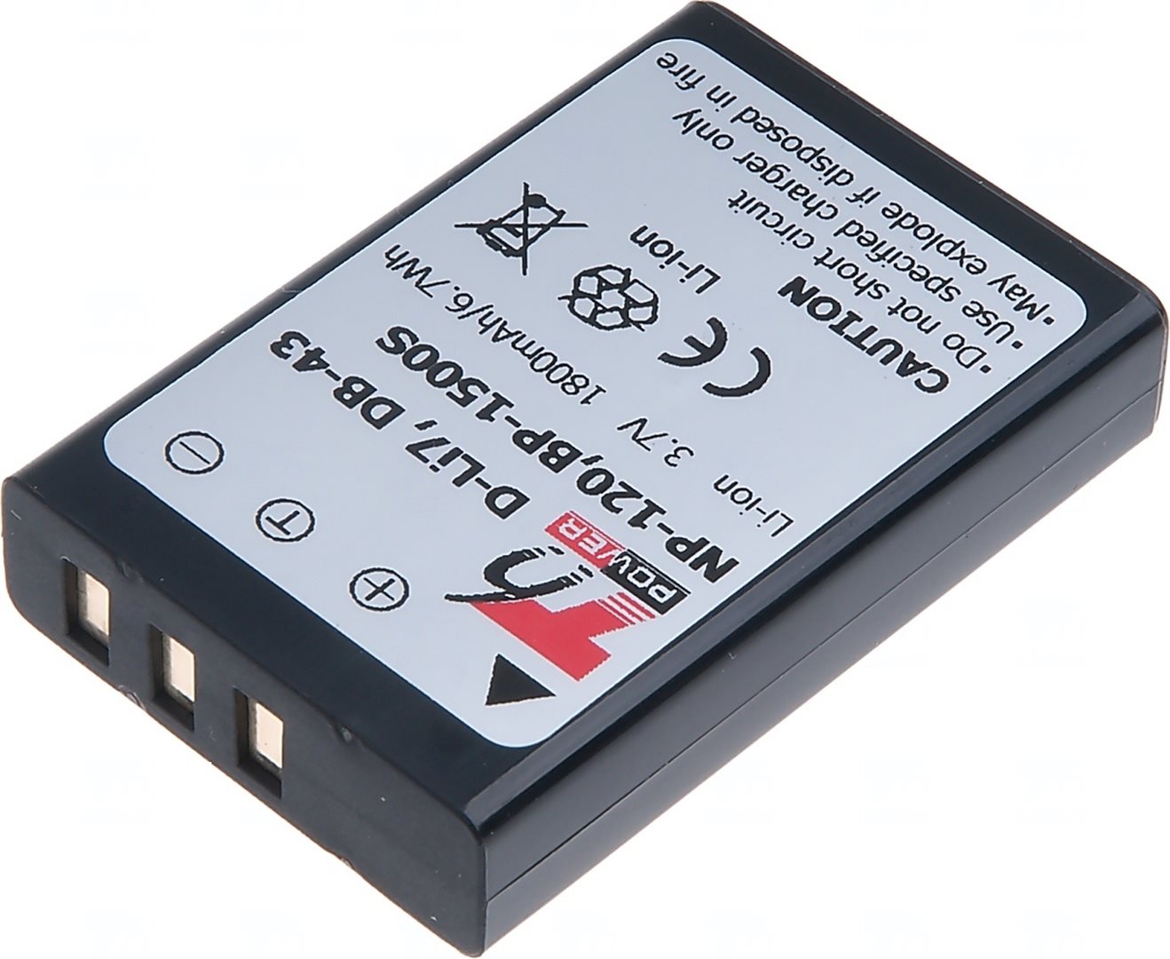 Typ: Li-ion Kapacita: 1800 mAh (6.7 Wh) Barva: černá Napětí: 3.7 V Rozměry: 53x35.3x11 mm Hmotnost: 42 g Produktová čísla: BP-1500S, D-Li7, DB-43, NP-120, PX1657 Kompatibilní modely: Evolve 2500HD Touch, Fuji FinePix 603, Fuji FinePix F10, Fuji FinePix F10 Zoom, Fuji FinePix F11, Fuji FinePix F11 Zoom, Fuji FinePix M603, Fuji FinePix M603 Zoom, Hitachi DZ-HV1074, Kyocera Tvs Digital, Pentax Optio 450, Pentax Optio 550, Pentax Optio 555, Pentax Optio 750, Pentax Opti