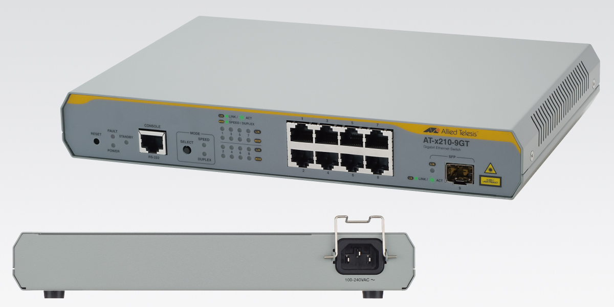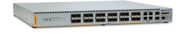 The fiber versions of Allied Telesis FS970M Series are designed for high security and long distance connectivity at the edge of the network in government, high EMI environments, warehouses, business campuses, educational campuses, and large retail stores. The FS970M/16F8-SC includes 16 x 100FX(SC) MMF, 8 x 10/100TX ports and two Gigabit combo 10/100/1000T-SFP-SFP uplink ports, and features two internal AC power supplies.