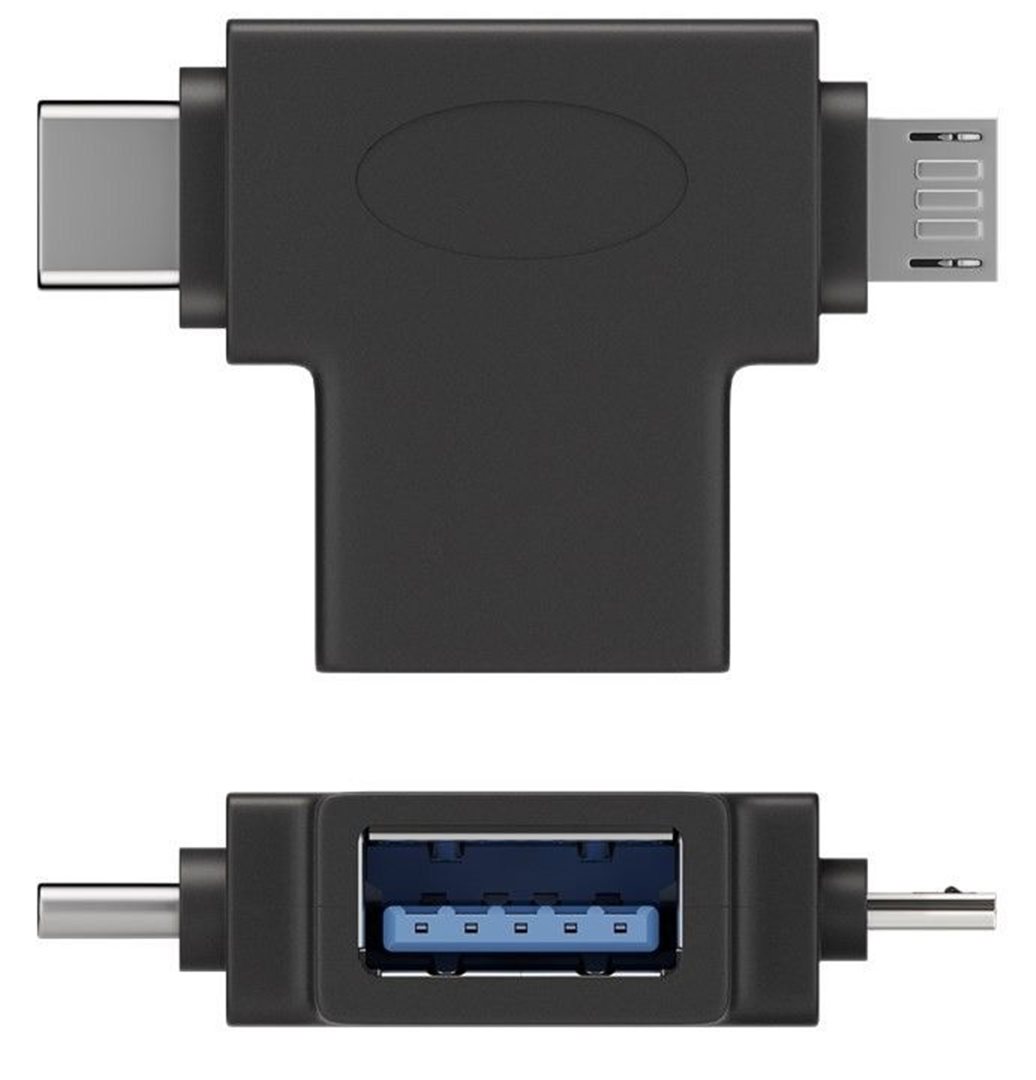 PremiumCord Adaptér USB A na dva konektory USB 3.1 C/male + micro USB B/male - Adaptér T slouží k připojení kabelu z počítače nebo nabíječky k telefonu nebo zařízení s konektory USB 3.1 C a micro USB B - Vstupní konektor USB A samička - První konektor: USB 3.1 typ C samec - Druhý konektor: micro USB typ B samec - Přenosová rychlost: Super-speed 5 Gbps, až 10x rychlejší než standardní USB2.0 - Nabíjení až do výkonu 4,5W - Zalévané konektory USB 3