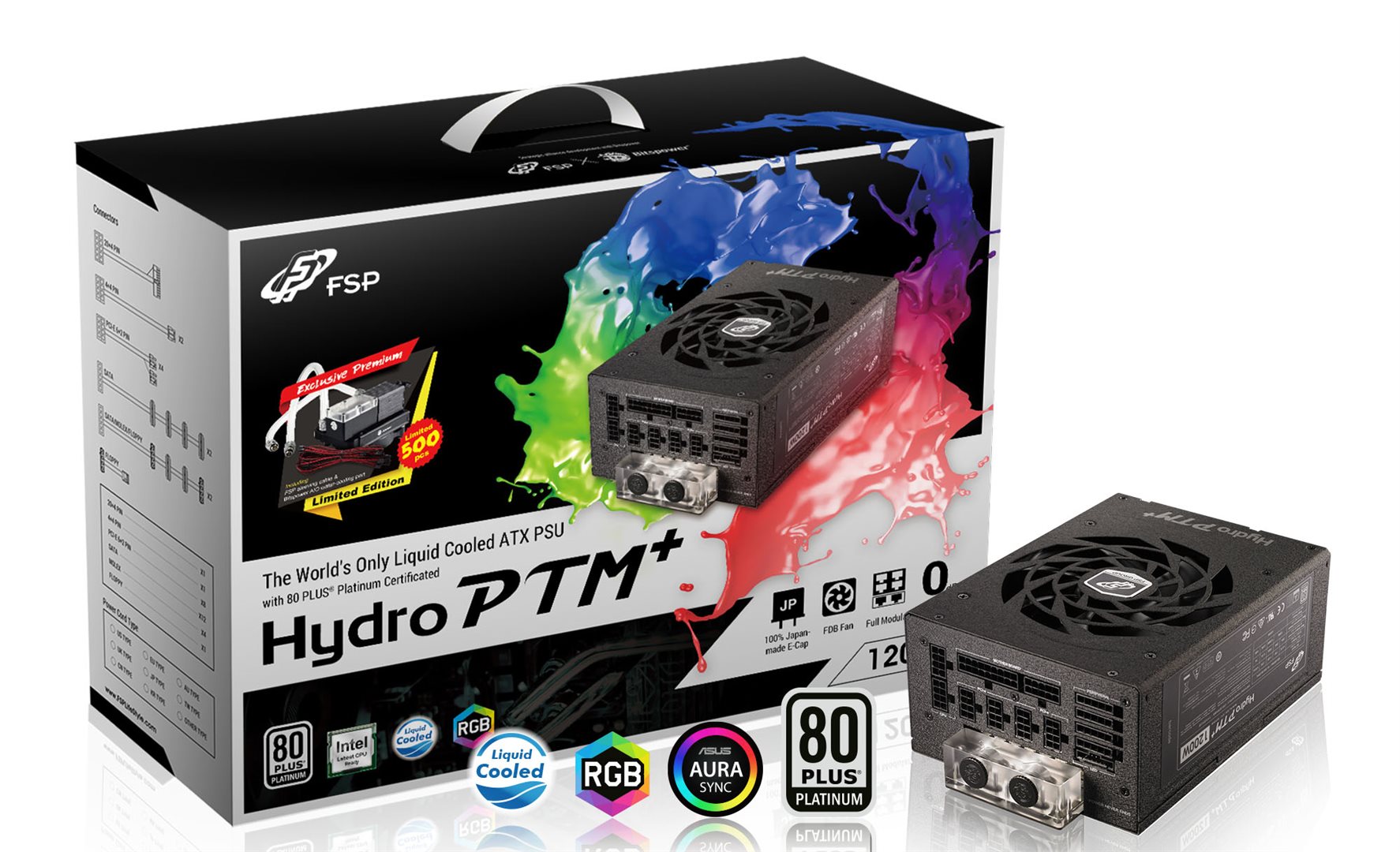 FSP/Fortron Hydro PTM+ je první zdroj na světě s certifikací 80 Plus Platinum a chlazením vodou. Pro zajištění bezpečnostních standardů k jeho tvorbě byla přizvána společnost Bitspower, která se specializuje na vodní chlazení počítačů. V současnosti jde o první masově vyráběný zdroj chlazený vodou s certifikací 80 Plus Platinum, k tomu má navíc LED osvětlení, díky kterému v sobě pojí skvělý vzhled s úžasným výkonem. Unikátní chladící syst