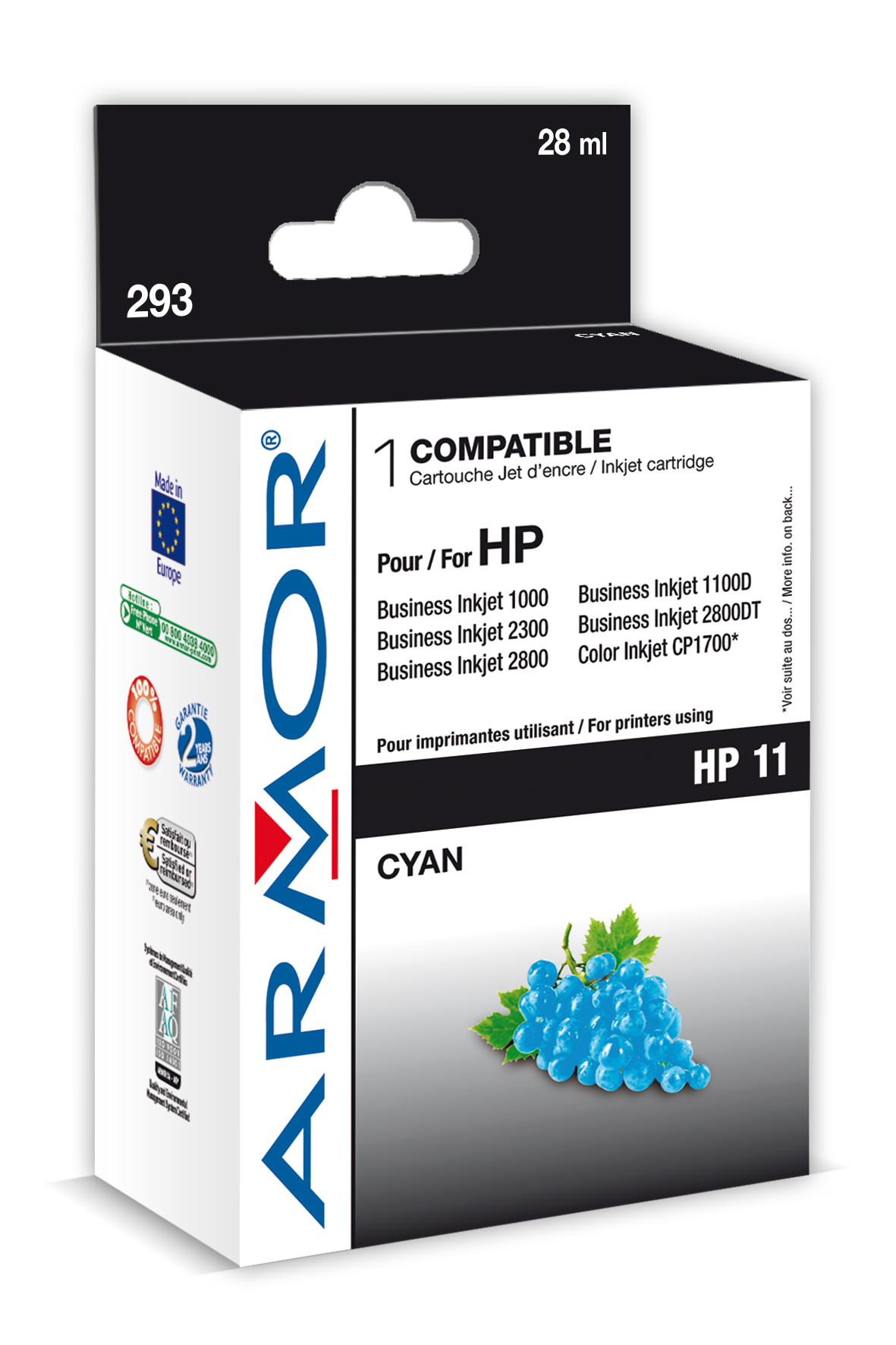 Popis:ink-jet pro HP OJ 8100/8600 cyan, 30 ml, komp.s CN046AE Výrobce:Armor Oem:CN046AE Kategorie:pro inkoustové tiskárny Čárový kód:3112539297060 Číslo krabičky:494
