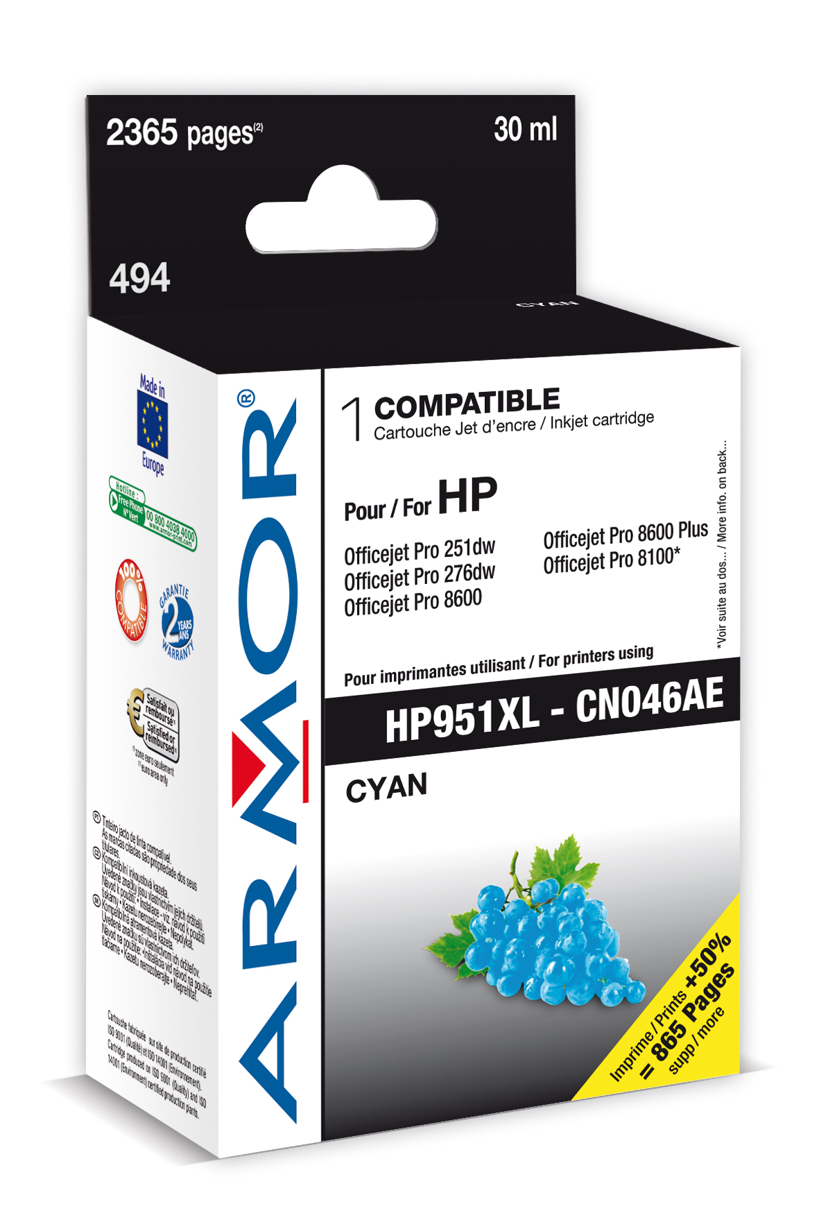 222881 - Armor ink-jet pro HP OJ 8100/8600 cyan, 30ml
